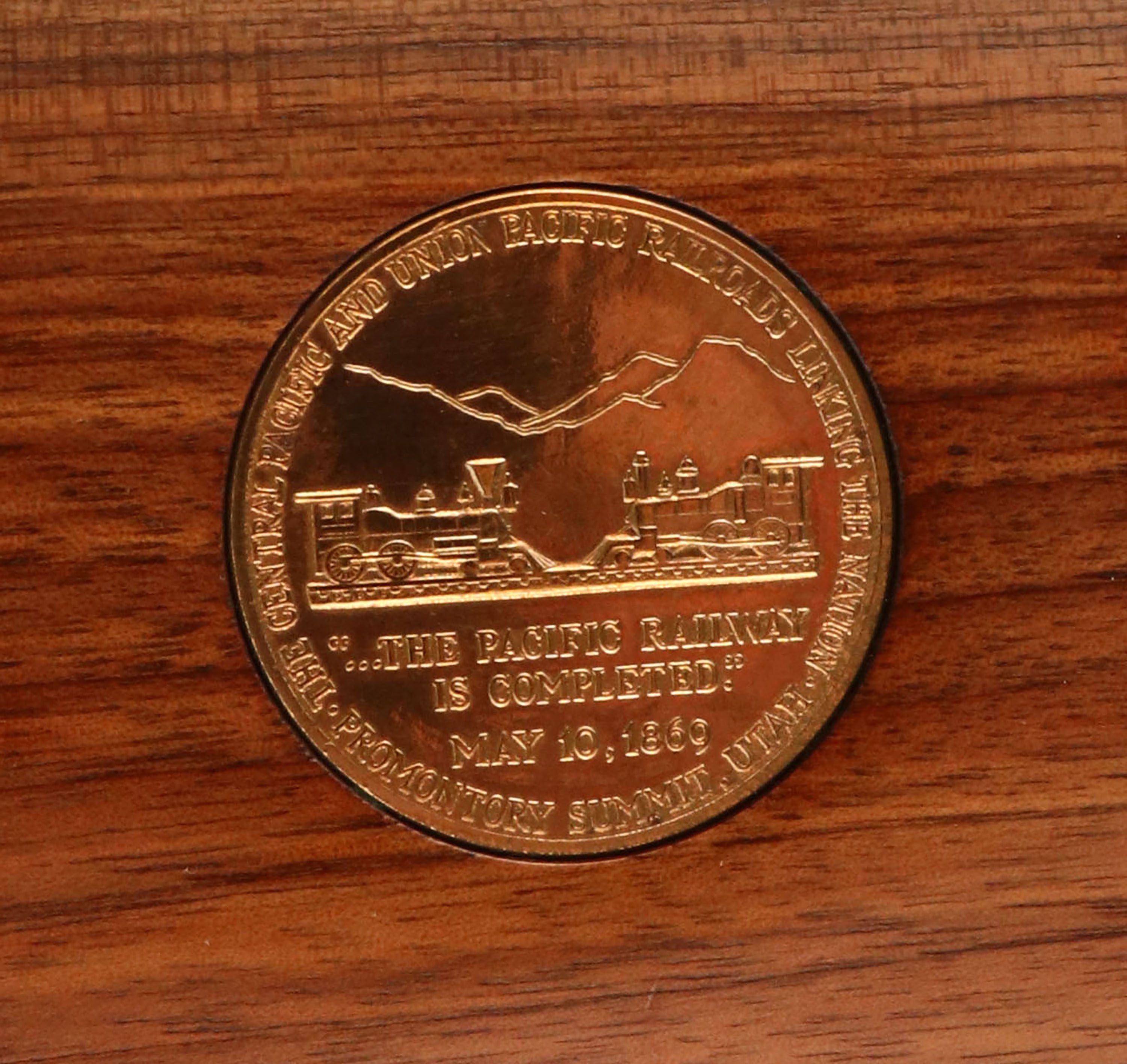 BOXED Winchester Model 94 SRC Golden Spike Commemorative, CAL: 30-30, MFG: 1969, SN: GS18105, Lever Action Rifle, 20'' barrel, full mag. The right side of the barrel is marked ''Golden Spike Commemorative''. There is an image of a Railroad Spike on the left side of the receiver, as well as the dates 1869 & 1969. The tang is marked ''Ocean's United by Rail.'' This rifle is in commemoration of the Pacific Railways completion in 1869. The straight grip wood stocks are excellent, displaying a few minor handling or storage marks. The metal blue finish on the barrel & tube rates 99% & the gold tone finish on the receiver is excellent, but with thin brush line. Bore is excellent. Factory sights. Stock carries a gold tone, checkered metal buttplate. Comes in original box, with the outer pictorial sleeve showing tears, tattering & wear. FFL or C&R Req. - Value: 600 to 1200