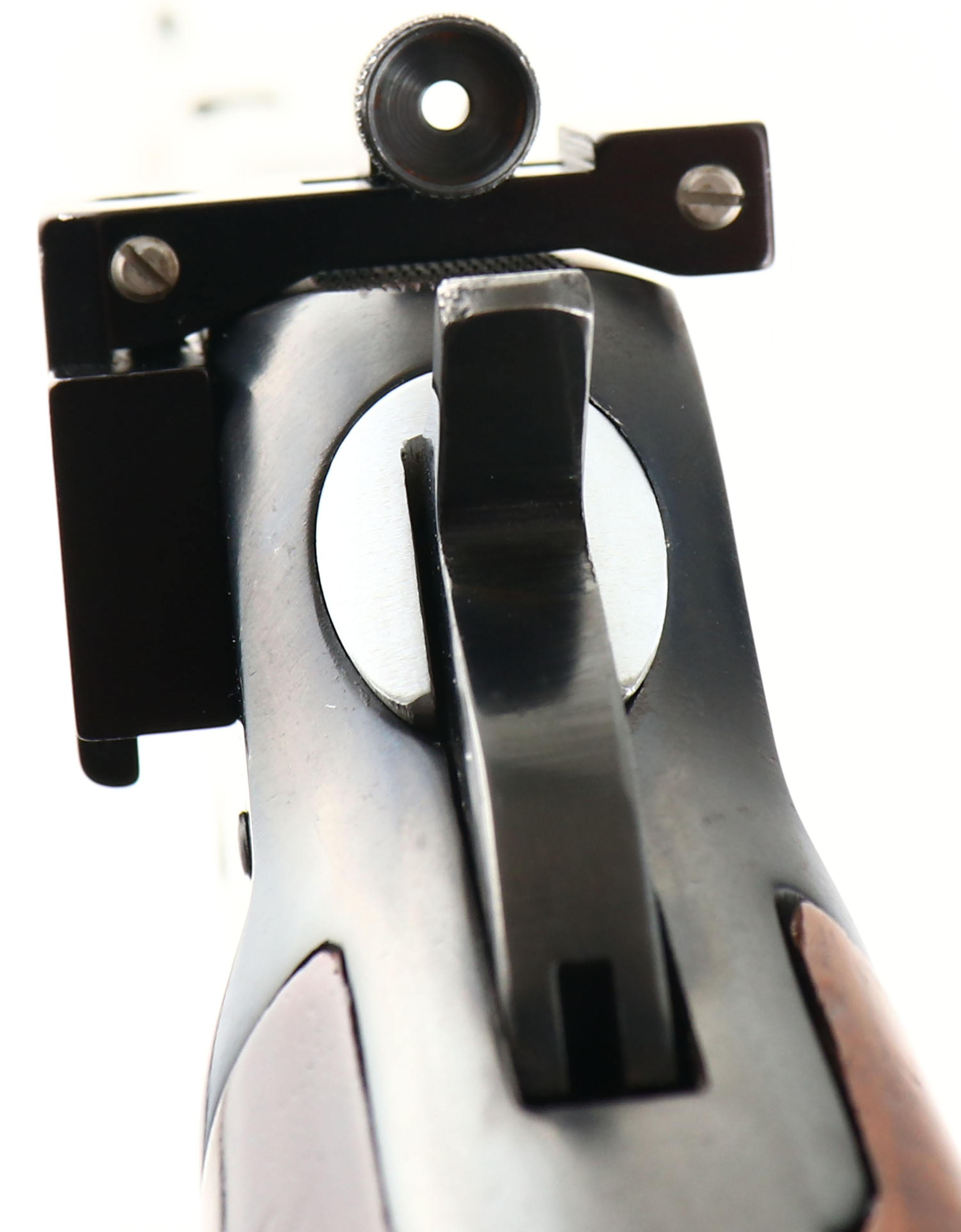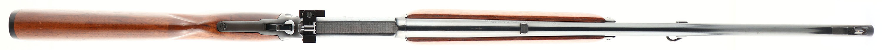 Marlin, Model 336 A, marked .35 REM Cal., MFG. 1951, SN: H310011, Lever Action rifle, 24'' round barrel, Full mag., The original flat pistol grip wood stock is very good & solid. The left side of the wrist has two tight grain cracks running from the upper to lower tang. The stocks have been sanded & nicely refinished, with the stock having very nice rippled & feathered grain. There remains a few small scratches or contusions. Marlin bull's-eye in stock is missing. The reblued metal blue finish rates 85% overall, with most wear on the belly of receiver & lever. The receiver mounted with a Williams side mount receiver sight, while the barrel carries a Marble blank filled rear dovetail & large blade front sight. Bore is excellent. Stock carries a Marlin plastic buttplate. Tight smooth action. Sling loops. A nice looking hunting lever action. FFL or C&R Req. - Value: 300 to 600
