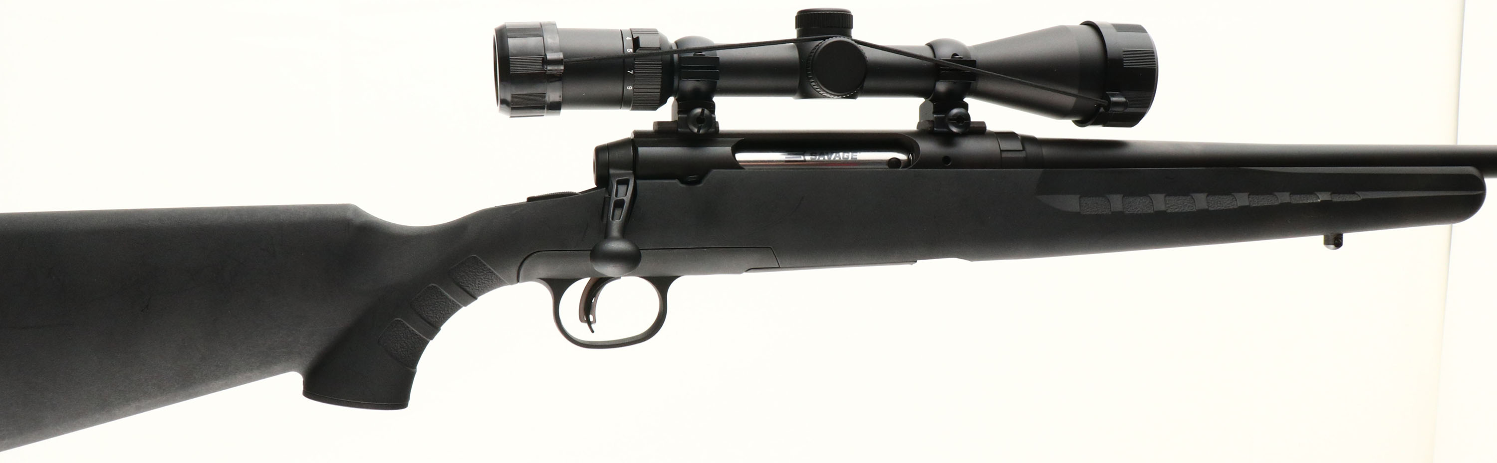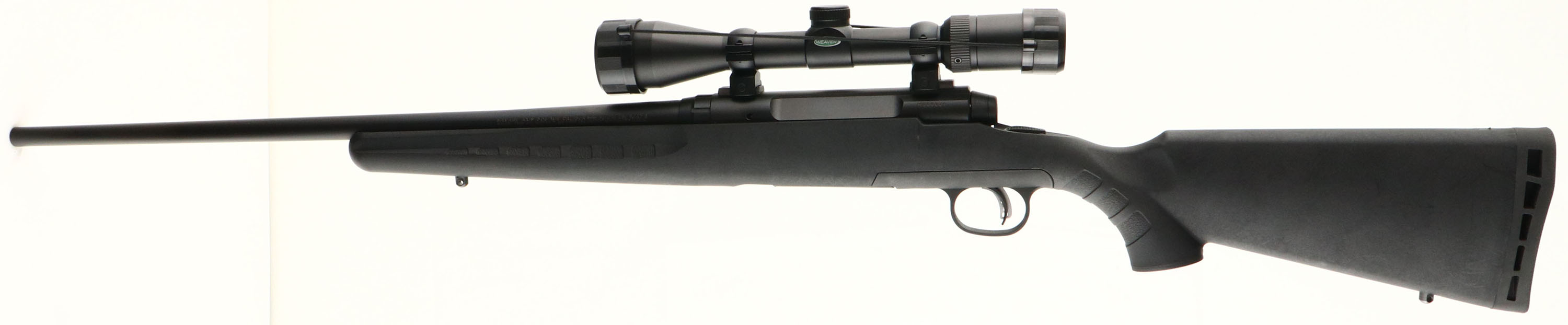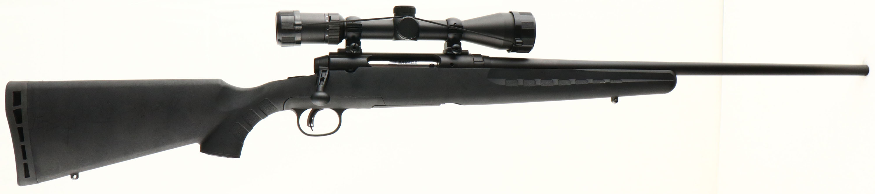 Savage, Model Axis, CAL: .308 WIN, MFG: Modern, SN: K539051, Bolt Action Rifle, 22 1/4'' Tapered round barrel. The original capped pistol grip synthetic stock is excellent, with very minor rubs or light use marks. The original metal finish 99% overall. Bore is excellent. The receiver is fitted with a Weaver 3-9x40 scope, with protective over-caps, & no open sight provisions on the barrel. Stock carries a factory ventilated recoil pad. Sling studs. Detachable mag. FFL Req. - Value: 400 to 600