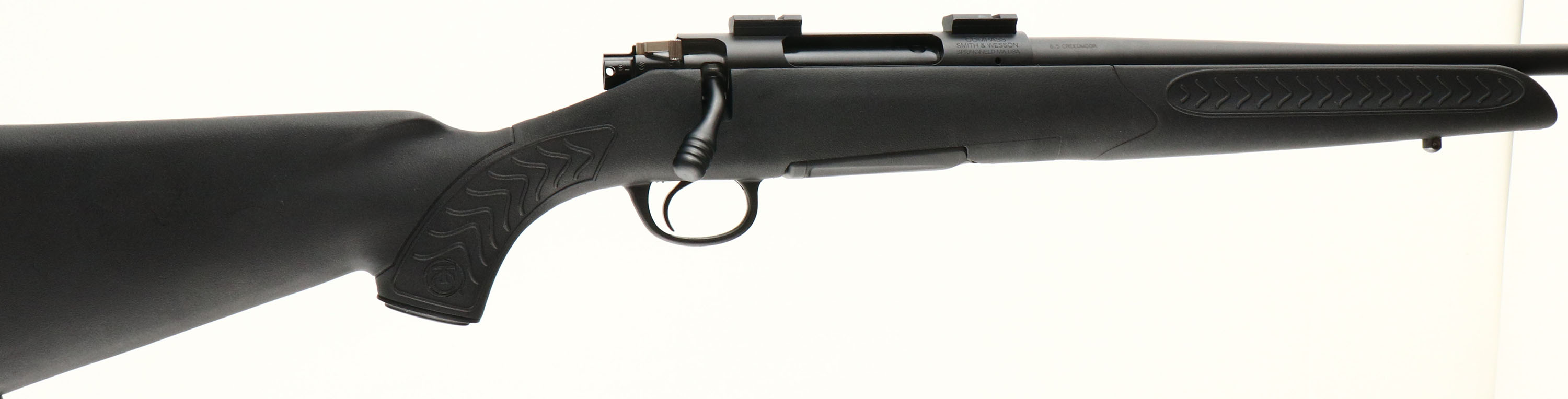 Thompson Center Arms, (Smith & Wesson), Model Compass, CAL: 6.5 Creedmoor, MFG: Modern, SN: THY6533, Bolt Action Rifle, 21 1/2'' tapered barrel, with threaded tip. The original flat pistol grip composite stock, w/ textured panels, is excellent, with very little usage. The original metal finish rates near mint. Bore is excellent. The receiver holds scope blocks & no open sight provisions on the barrel. Factory sling studs. Stock carries a solid rubber TC recoil pad. Detachable mag. An excellent all weather & quality hunting rifle. FFL Req. - Value: 300 to 400
