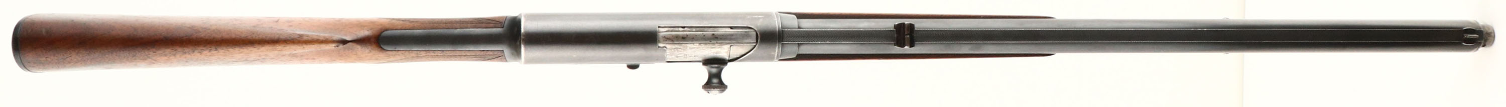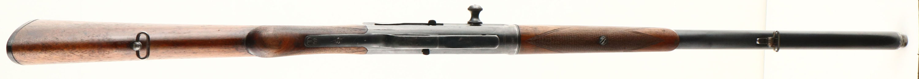 RARE FN (Fabrique Nationale), Model 1900, .35 Rem Cal., MFG. 1910-36, SN: 240, Semi-Auto Rifle, 22'' barrel, In Belgium it was known as ''La Carabine Automatique Browning'', in Germany it was the ''Selbstladebchse Browning Kaliber 9mm'', but in the U.S. we know it simply as the F.N. 1900. Records indicate only 4,913 Modele 1900's were ever produced. While records indicate 2909 rifles were produced for the years 1910-21, with no allocation to a particular year during that time, it is likely that SN 240, is a first or 2nd year production rifle. This rifle, invented by John Browning, was one of Europe's first successful semi auto high-power rifle. FN obtained the rights to produce the rifle as early as 1902, however, they chose to focus their production efforts on the A5 shotgun, which they acquired production rights to at the same time. They correctly viewed greater consumer sales potential in the A5. By 1904 restrictive importation tariffs into the U.S. caused Browning to negotiate with FN to allow manufacture of his shotgun within the U.S. The Remington Arms Co. was eager to work with John Browning & acquire the rights to manufacture both his autoloading shotgun & his autoloading rifle. FN was first to introduce the long-recoil shotgun (A5), but it was Remington that first produced John Browning's long-recoil rifle in 1906, dubbed the ''Autoloading Rifle'' or more commonly known today as the Model 8. If the Remington Model 8 is the grandfather of American semi-automatic sporting rifles, the F.N. 1900 is its European twin. The FN model 1900 was marketed throughout the world except the U.S., while the model 8 was intended for the U.S. market. Production comparisons place the model 8 at around 70,000, nearly a 14 to 1 difference. Since the FN was not sold in the U.S. market, few examples of the limited 4913 total produced are found amongst collectors in the U.S. It is known that some were vet bring-backs from two World Wars & at least a few were imported by Val Browning into the US. Since the FN was exported to Canada, some have made their way south of the border. Regardless of how they arrived, they are rare & very desired amongst Remington 8 & 81 collectors. Produced with old-world craftsmanship, these rifles are a testament to Fabrique Nationales word-wide reputation for manufacturing high quality firearms. It doesn't take long to notice there were probably more hours of labor involved in producing the FN over the Remington. A close inspection & disassembly of both rifles will reveal a significantly superior fit & finish with the Belgium made version, even over early production Model 8s. The FN came in two versions, neither of which were a higher grade than the other. One version had a standard barrel jacket like the Model 8, the other a solid barrel rib running the length of the jacket, which is the case with this example. These take-down rifles were often broken down into the 22'' & 20'' halves & placed into travel cases. The rifle has an English walnut round knob pistol grip stock & schnabel tip forend. Hand cut factory checkering is 20 lines-per-inch, with the early 1st style forearm checkering pattern. All hand fit & assembled, to that point stocks do not always interchange one rifle to another & factory LOP can vary by as much as a full inch. The stocks original condition is excellent, with thinning finish wear, minor handling scuffs, scratches & dings. The original metal blue finish is approximately 85% overall, with blue thinning at the carry points of the receiver & barrel & some minor scratches. The left side of the receiver carries the factory roll stamp & proof markings. Bore is very good. Barrel is fitted with replacement fixed rear sight & Lyman front sight. FN horn buttplate. Replaced sling loops. Some denting to the belly of the magazine. Tight action & functions as it should. An overall excellent & eye catching example of this rare & highly collectible early production rifle. FFL or C&R Req. - Value: 3000 to 4500