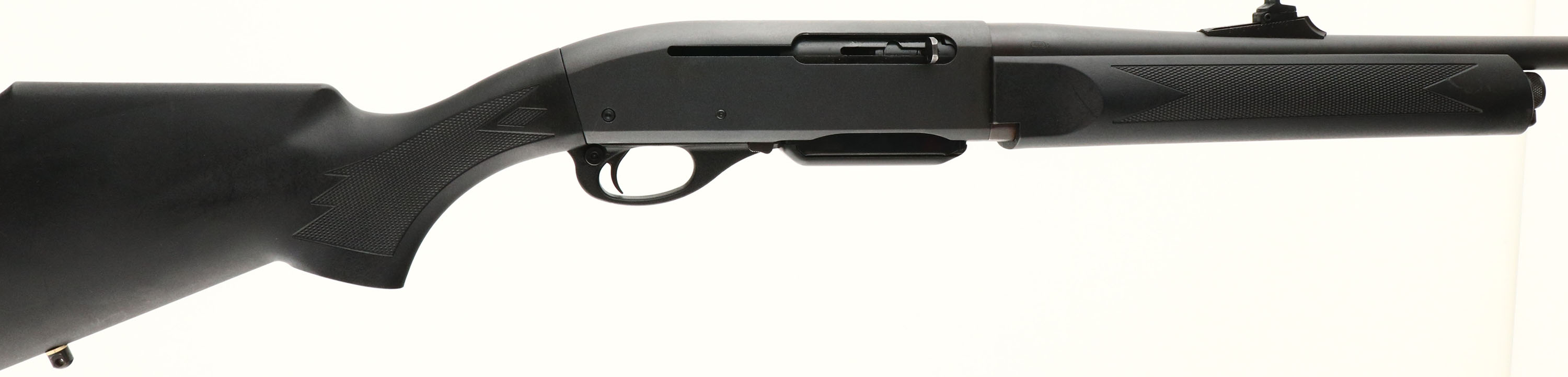 Remington, Model 7400 WeatherMaster Synthetic, CAL:30-06 SPRG, MFG: Modern, SN: C8053779, Semi-Auto Rifle, 22 1/4'' round barrel. The original checkered & flat pistol grip synthetic stocks are excellent & solid, with just a couple of tiny handling rubs. The original metal matte gray/black finish 99% overall. Bore is excellent. The receiver was previously mounted with a scope, with the four factory screw hole provisions currently left open. The barrel carries original adjustable rear & ramp front sight. Stock carries the Remington solid rubber recoil pad. Sling studs. Original detachable mag. Comes with the safety locking tool. Basically a nearly new old stock rifle. FFL Req. - Value: 600 to 800
