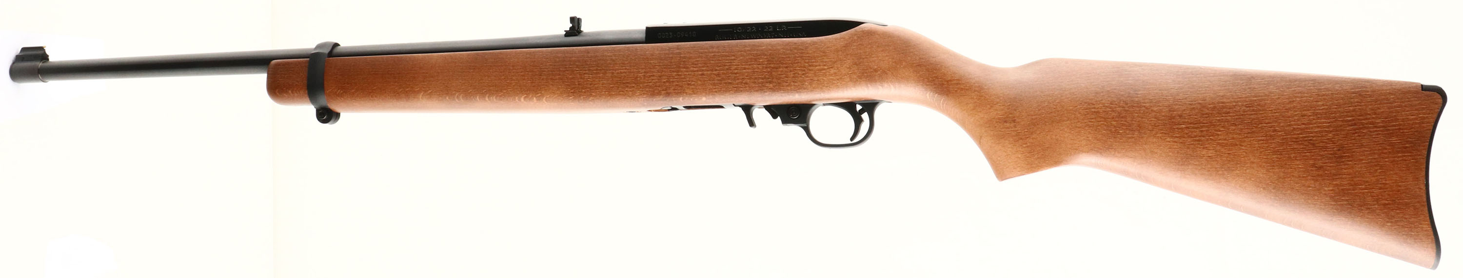 BOXED Ruger, Model 10/22 Carbine, RUGER & ORION EDITION CAL: 22 LR, MFG: 2023, SN: 0023-09410, Semi Auto Rifle, 18 1/2'' barrel. Marked 167 of 300. The factory flat pistol grip wood stock is excellent, with no handling marks to the original finish. The stock has a beautiful race horse & floral scene laser engraved on the right side. The original metal blue finish rates 99%+. Bore is excellent. The barrel holds a standard folding leaf rear sight & blade front sight. Stock carries a smooth plastic carbine buttplate. Detachable mag. Comes in the original box, with paperwork, lock & scope mounting bar. FFL Req. - Value: 300 to 500
