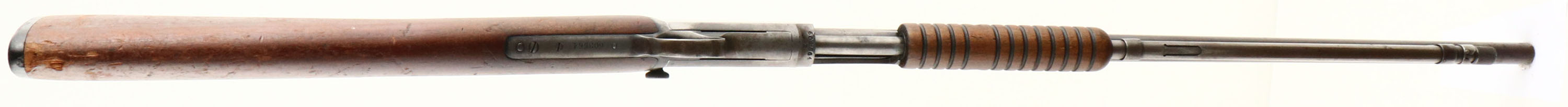 Winchester, Model 1906, .22 S. L. & LR. Cal., MFG. 1906, SN: 603564, Pump Rifle, 20'' Round barrel. Full Mag. The gum wood stock & 1890 style forearm are very good & solid, with several contusions, scrapes, scratches & knicks to the original finish. The original metal blue finish has worn mostly gray, only about 20% blue left on the receiver & the rest with a spotty thin brown patina. Original front & rear sights. Bore is very good. Worn original Winchester buttplate. FFL or C&R Req. - Value: 400 to 800