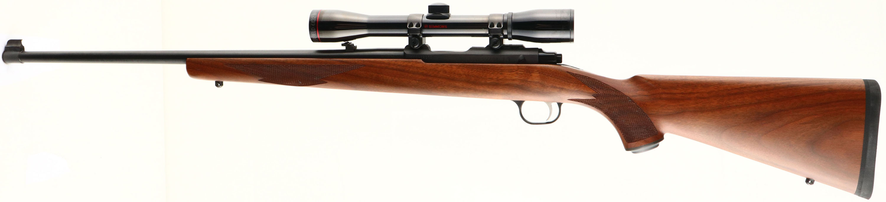 Ruger, Model M77/22, marked .22 WIN MAG RF Cal., MFG. 1992, SN: 701-14170, Bolt Action Rifle, 20'' round barrel, The original checkered & capped pistol grip wood stock is excellent, with just a few tiny finish level handling marks to the original finish., The original metal blue finish is 99%+, with the receiver just starting the typical toning to an attractive Ruger plum. Bore is excellent, The receiver is mounted with a Simmons Deerfield 4X32 W-V scope, while the barrel is carries the original front & rear sights. Stock carries the factory solid recoil pad & sling eyelets. Detachable mag. A high quality .22 rifle in excellent condition. FFL Req. - Value: 600 to 1000