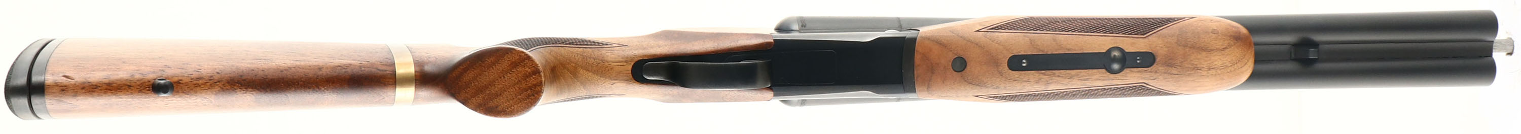 CASED Chiappa, Model Triple Threat, CAL: 12 GA, MFG: Modern, SN: TC01736, Break Action SxS+ Shotgun, Screw-in chokes, with 5 total tubes. 18 1/2'' barrels. The original checkered & flat pistol grip walnut stocks are basically mint, having a hand oiled finish. Decorative brass band around stock is unusual, but factory standard. The original metal finishes are excellent. Bores are excellent. Extractors. The top barrel holds a fiber optic front sight. Single non-selective mechanical reset single trigger system. Manual Safety. Sling provisions. Buttstock carries a solid recoil pad. LOP: 14 1/4'' overpad. Comes in its original hard case, with packaging, extra chokes, choke tool & 1/4'' ''T'' handle Allen wrench. A really cool self defense or multi use shotgun. MSRP: $2,165. FFL Req. - Value: 1000 to 2100