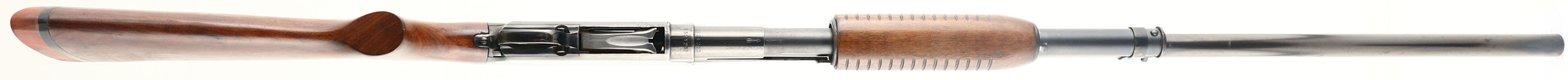 Winchester, Model 12 Duck Gun, CAL: 12 GA, MFG: 1950, SN: 1324252, Pump Action Shotgun, Choke: FULL, 3'' Chamber, 32'' Solid rib barrel. This gun has the barrel length, solid rib, chamber & choke of a typical ''Duck Gun''. The original flat pistol grip wood stocks are excellent, with the lower portion of the stock having been previously sanded in a couple of areas & nicely refinished. The forend appears to carry the original finish. There are very few minor blemishes to the wood, The original metal blue finish rates 75% overall, with thinning & spotty loss, & a couple of small areas of cleaned rust pitting on the left side of receiver. Bore is excellent. Silver single front bead on rib. Buttstock carries a Winchester solid red recoil pad, with 13 7/8'' LOP over pad. FFL or C&R Req. - Value: 600 to 1000