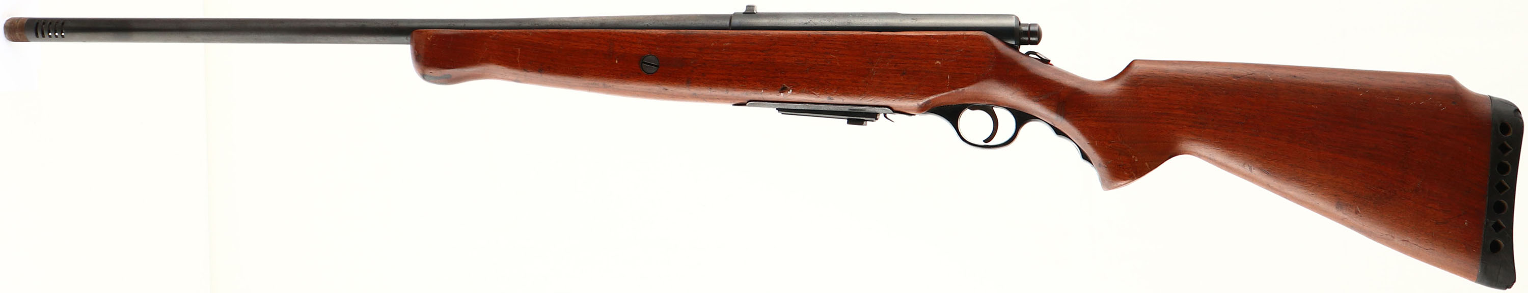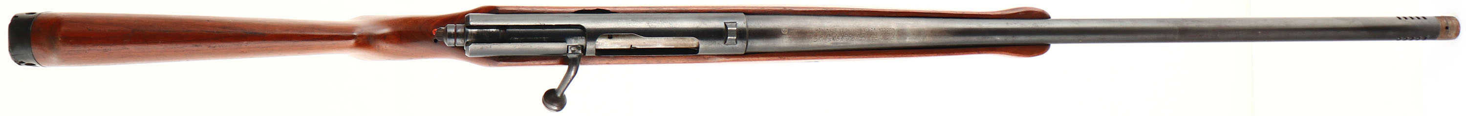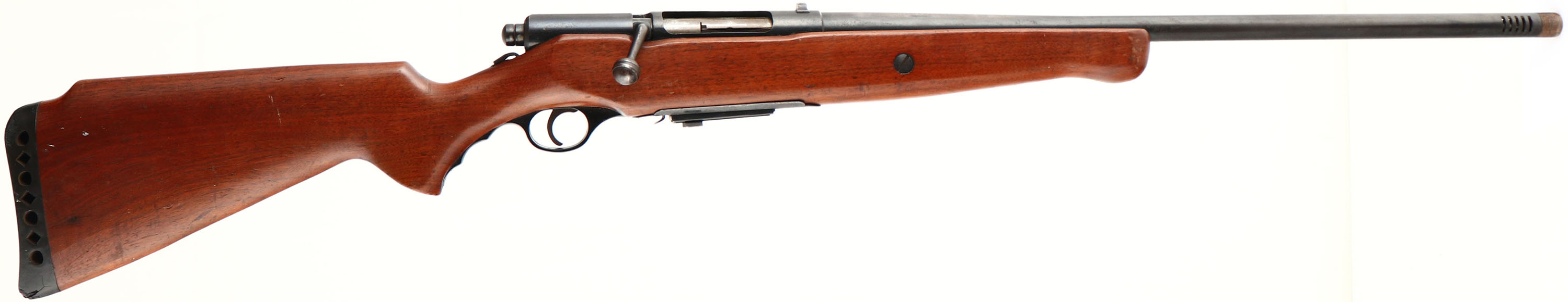 O.F. Mossberg & Sons, Model 190K-A, CAL:16GA, MFG: 1950's, SN: NONE, Bolt Action Shotgun, 24'' threaded & ported barrel. The original flat pistol grip stock is very good. There are a couple deep indentations, contusions & scrapes. The metal blue finish rates 85% on the barrel & 90% on the receiver. There are areas worn to metal gray & spotting toned to a brown patina. Bore is excellent. Rear block sight, no front bead. Stock has a ventilated black rubber recoil pad. Missing screw-on choke system or compensator. FFL or C&R Req. - Value: 150 to 300