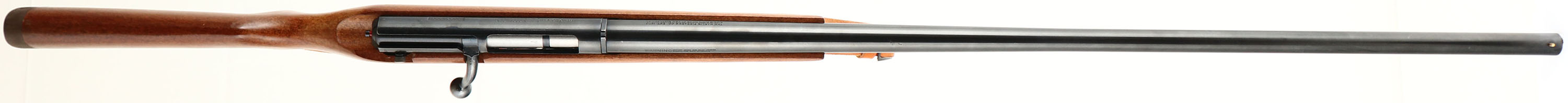 Marlin Firearms Co., The Original Marlin Goose Gun (Model 55), CAL: 12GA, MFG: 1968-88, SN: 15705899, Bolt Action Shotgun, 36'' barrel. The flat pistol grip wood stock is excellent. The original metal blue finish rates 98% overall. Bore is excellent. Fixed rear sight & bead front sight. Comes with leather sling & related paperwork. FFL Req. - Value: 200 to 400