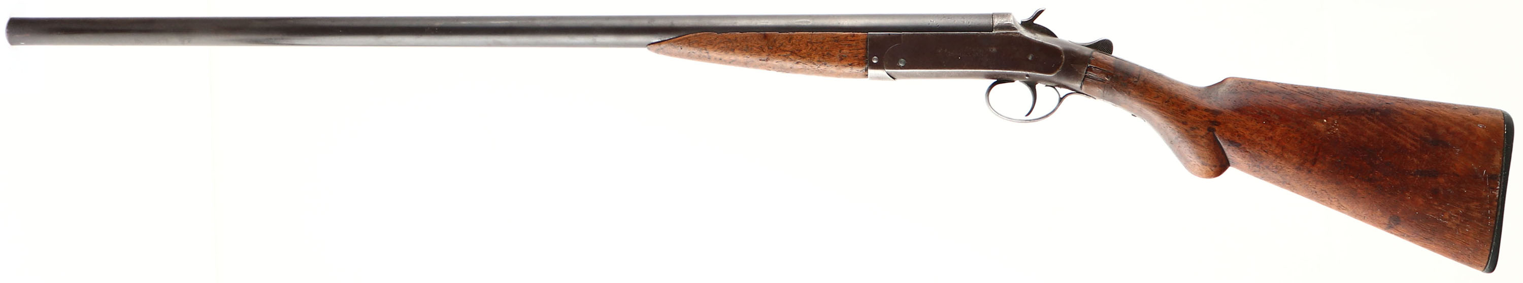 A. Baldwin & Co. Limited, Model Single Break Shotgun, CAL: 12 GA, MFG: circa 1900's, SN: None, CYL+, 30 1/2'' barrel. The original round knob wood stocks are fair, with several glued stress cracks & a chip at the wrist, There are edge chips on the forearm & numerous contusions, scrapes, nicks & scratches to the well worn original finish. The metal finish has worn & toned to a brown patina. There take-down pin & coin shaped take-down assist has been replaced with a new pin & actual coin. Bore is fair due to heavy use, but clean. No bead on barrel. Buttstock carries a worn black plastic buttplate. FFL or C&R Req. - Value: 50 to 150