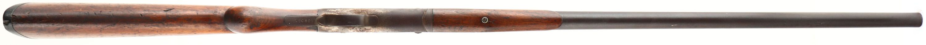 Harrington & Richardson Arms Co. Model 1901 Single Break Shotgun, CAL: 12 GA, MFG: early 1900's, SN: A29081, FULL, 30'' barrel. The original round knob wood stocks are good & solid, despite a 6'' stress cracks running along each side of the wrist. There are numerous contusions, scrapes, nicks & scratches to the thin & worn original finish. The metal finish has worn & toned to a brown patina. The take-down pin is missing the take-down assist piece on the receiver. Bore is fair due to heavy use, but clean. Single front bead. Buttstock carries a checkered black plastic buttplate. FFL or C&R Req. - Value: 80 to 150