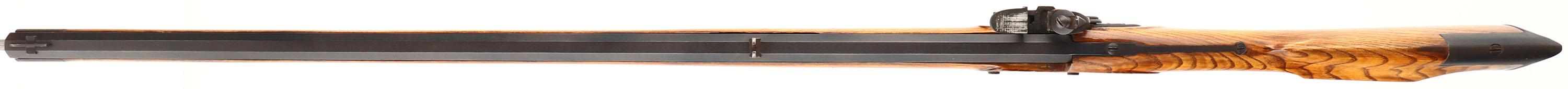 Unknown Maker, Commercial Reproduction Flintlock Rifle, CAL: 40, MFG: N/A, SN: NONE, Flintlock Muzzleloader Rifle, 34 1/4'' octagon barrel. The straight grip wood stock is excellent. There are minor scrapes to the finish. The original metal blue finish on the barrel has toned to a mix of original blue & brown patina. Rifled bore is excellent. Full buckhorn rear sight & blade front sight. Crescent metal buttplate with bone inlay at the toe. Double set trigger. A nice utilitarian flintlock muzzleloader. Black powder, No FFL Req. - Value: 300 to 600