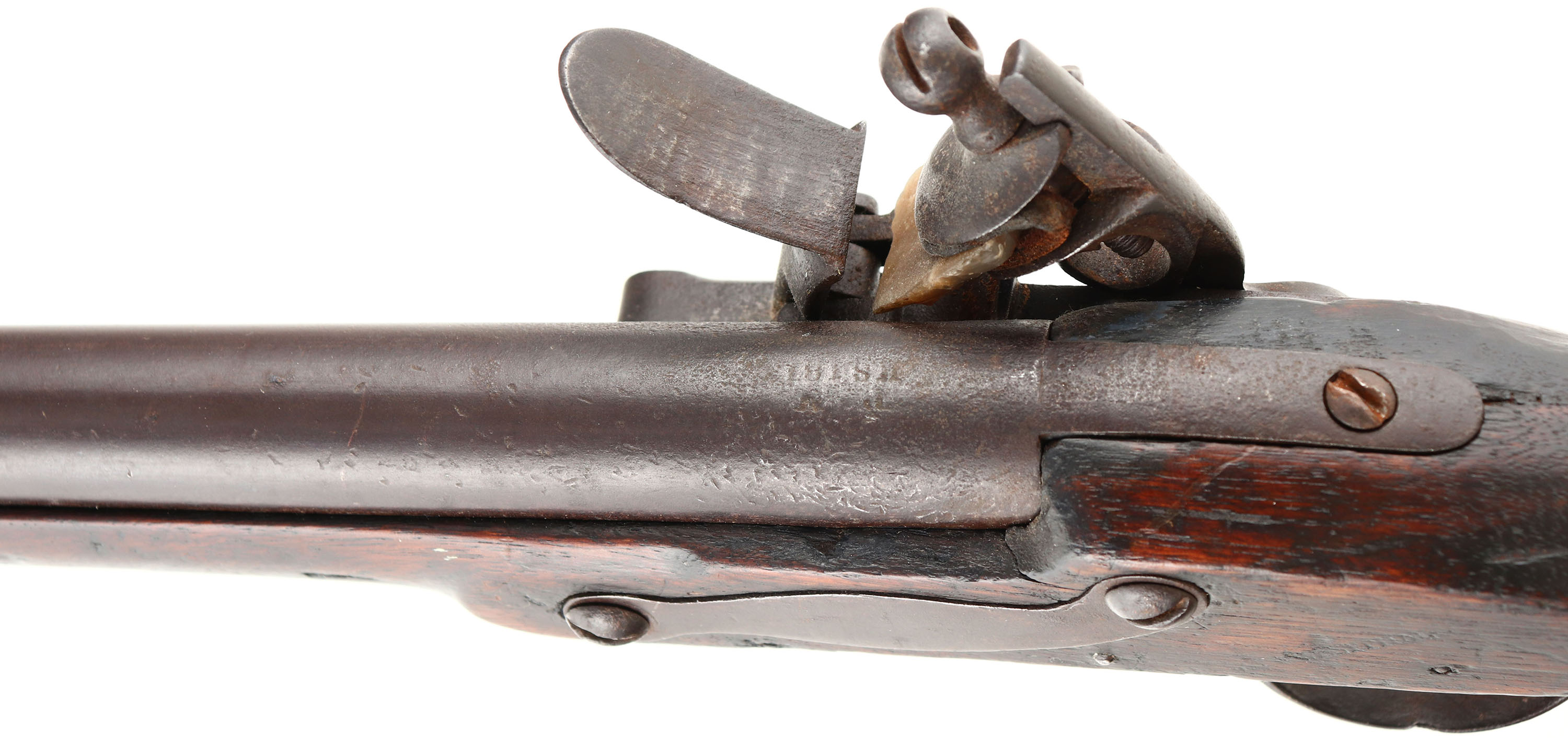 HISTORY: The M1795 Musket was the first musket produced by US arsenals, Springfield & Harpers Ferry. It was heavily based on the Charleville Model 1763/66 which had been imported in large numbers & used extensively by the US during the revolutionary war & was the most numerus musket in Americas arsenal. It would continue to be updated & new models would come out. approximately 80,000 rifles were made at Springfield from 1795-1818 when the new model took over production. These would be used clear until the civil war & as Percussion systems became available, they were retrofitted with them. This rifle has the ''PM'' mark on the barrel which is the official acceptance mark of the Massachusetts Militia, thought to stand for ''Proved Massachusetts''. The rifle is a mix of models of parts, common as old parts would not go to waste. It has a type 2 trigger guard & a type 3 lock. With this rifle being 214 Years old, it is a tall feat that it still exists & still in intact condition. A nice piece of American history that is almost as old at the country.