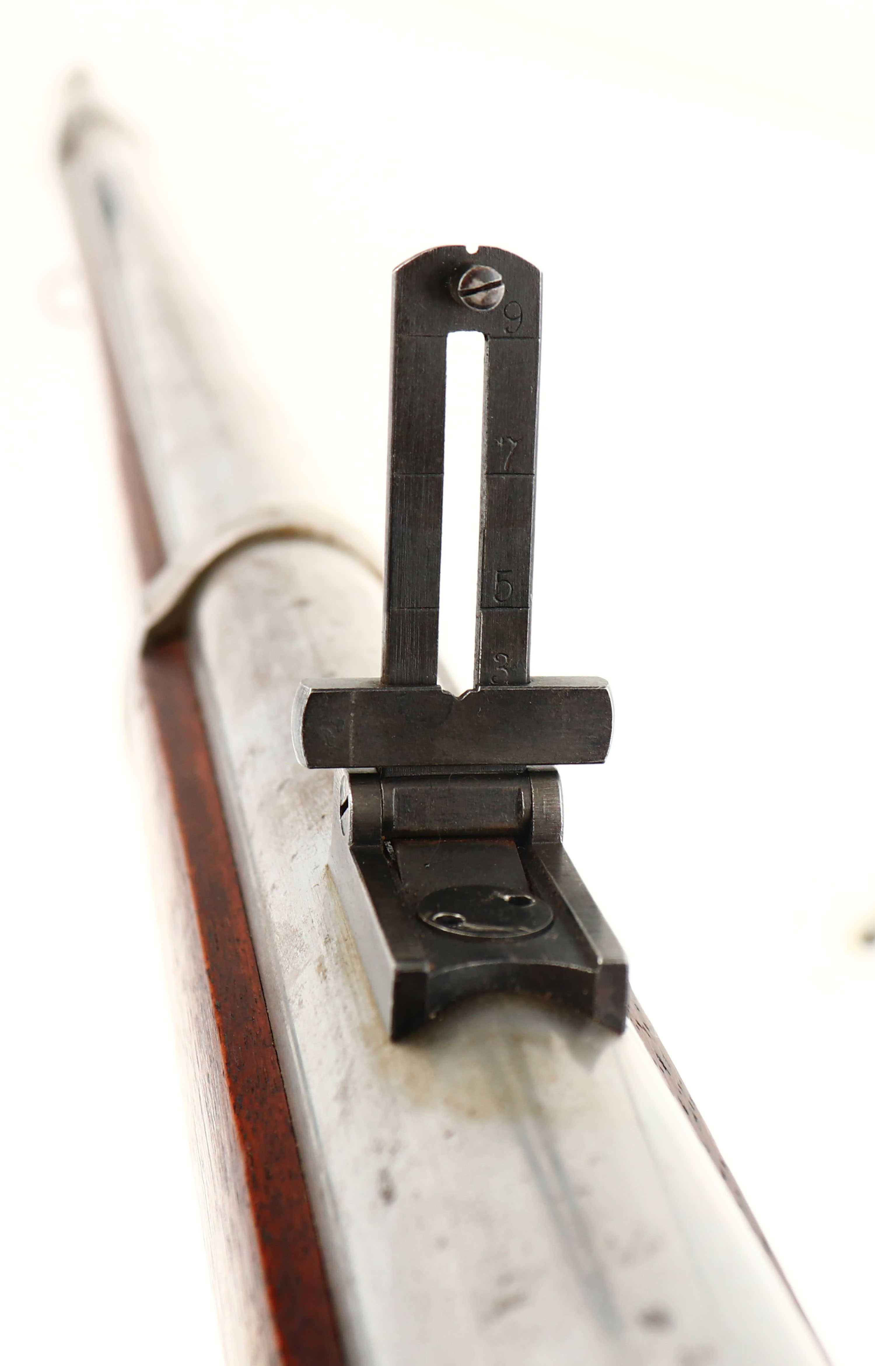 HISTORY: After the civil war the US Ordnance Department wanted to standardize on one rifle & one cartridge & would begin trialing for it. This would start with Allens early trapdoor conversions. Rolling block rifles carbines were praised for their simplicity & strength during the Civil war & were remembered by the Ordnance department. In 1866 the Ordnance Department contracted for Remington to mate 504 of their Rolling Block receivers with surplus US M1861/63 musket barrels & furniture for trial use. These were well received & the Navy contracted for 5095 rolling block carbines (1867 model) & 498 cadet rifles. All the receivers for these rifles were made by Remington & Springfield, barreled the actions & put the furniture on. In 1870 the Army would conduct another trial of the rolling block. This is the rifle we have here, these are marked 1870 for their MFG date. 1008 rifles & 313 Carbines would be made for this test. These again were Remington made receivers, with new production M1868 rifle barrels & parts that Springfield put together. These tests would show it was more accurate than the M1868 rifle, but the action let water & dirt in easily. There would be more tests done on the rolling block but ultimately in 1873 the US would adopt the trapdoor Springfield. A big part of adopting Springfield is not having to pay royalties to Remington Since it was designed by the master armory of Springfield at the time & thus the government owned the rights to the design. A very rare & seldom seen American trials rolling block.