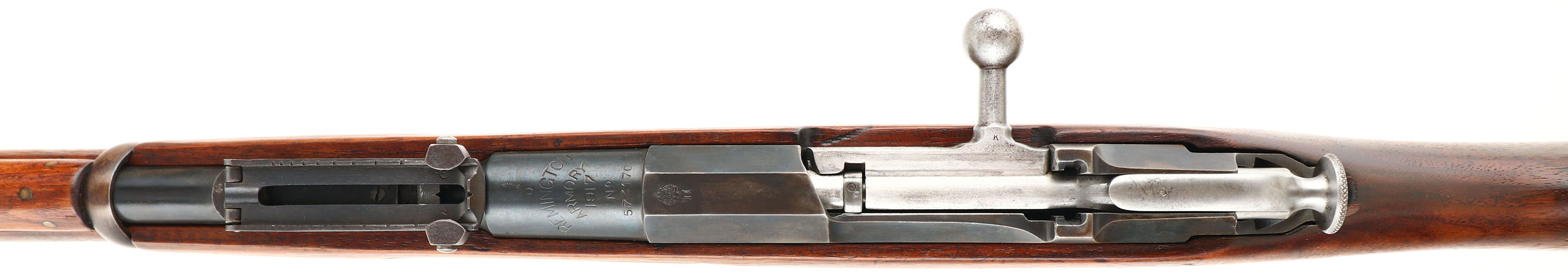 Remington, Model: M1891 Mosin, Cal: 7.62x54mmR, MFG: 1917, S/N: 572170, Bolt action rifle, 31 1/2'' barrel. The straight wrist walnut stock is very good as being lightly sanded & oiled. Stock has small nicks, dings, dents, & scratches. The right cheek of stock is marked with a lightly faded, Russian eagle Remington stock cartouche, indicating this is the original Remington stock. The bottom of the stock, Infront of the magazine, is marked with a faded flaming bomb over ''US'', US property mark. The metal has been re-blued & rates 85% on the barrel with spots wear & thinning. The receiver rates 80% with spots of thinning & brown patina. The top of the receive band is marked with a Russian imperial eagle over a Cyrillic ''P''. The top of the barrel is marked with a half buffed Russian eagle, ''REMINGTON'', ''ARMORY'', ''1917'', ''NO'', & the S/N. all parts are S/N matching, some S/N faint from cleaning. The bore is very good. Its bright with strong rifling, but has light roughness. The barrel holds a barleycorn front sight with a Konovalov rear sight. The stock carries a steel buttplate, toned brown with patina. Has both sling wells. Rifle has cleaning rod. Comes with correct Remington M1891 bayonet. FFL or C&R Req.