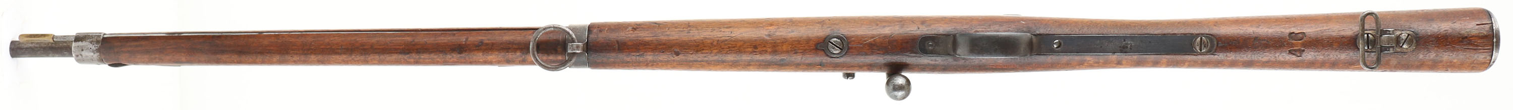 CONDITION: the straight wrist wood stock is very good with nicks, dings, dents, scratches & wear from use/age. Metal is proud to the wood in one spot on the lower tang & on the toe. The metal has mostly worn gray with areas toning brown. Chamber areas has spots of rust. The left side of the receiver is marked with the S/N, ''K.Mod.71.''. Right side of the receiver is marked with three imperial German proofs, ''1879''. The top of the barrel is marked ''L.F.t.P'', ''St. Denis''. S/N matching bolt, all other parts are mismatched. The bore is very good. Its bright with strong rifling with small spots of roughness. The barrel holds a barleycorn front sight with a stepped base/ladder V-notch rear sight. Base marked 2 to 10, ladder marked 12 to 20. The stock carries a bare steel buttplate, has brown patina speckling. Rifle has bottom sling loop & forward sling ring. Rifle has cleaning rod. A nice handy carbine with a unique story & interesting markings. Antique no FFL Req. - Value: 600 to 2000