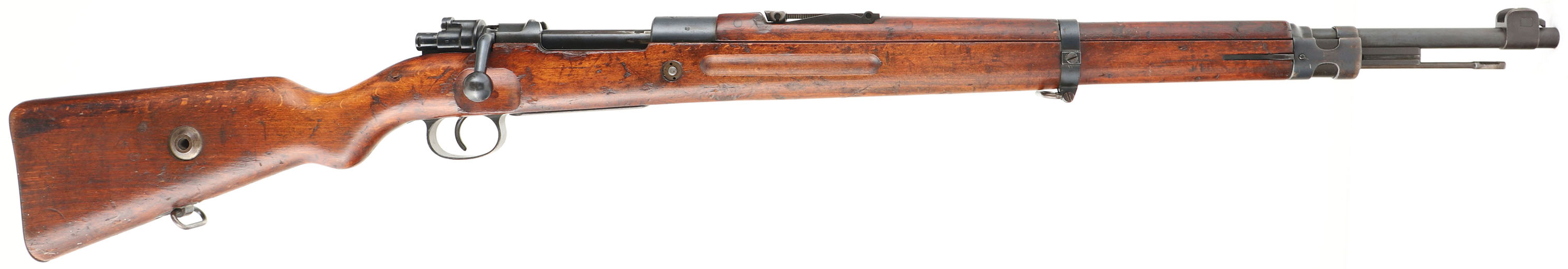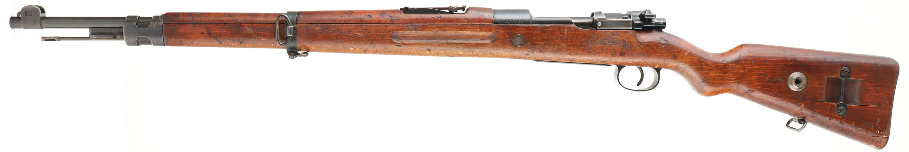 HISTORY: Production of the kbk wz.29 was done at the National Arms Factory in Radom between 1930 & September 1939 when the Germans invade. 264,000 were rifles produced of two models, a infantry model with a straight bolt handle, & a cavalry model with a bent handle. Some of these rifles were sold & exported to Spain & Afghanistan. Most of these rifles would be captured by the Germans after the surrender of Poland. Existing rifles would be put into German service with little to no modification since its close resemblance to the German K98k, these rifles would be called Gewehr 298 (p) in German service. The Germans would start production of the rifles again at the captured Radom factory under Steyr control, but would be modified exactly to K98k specs & would be marked G29/40. The K98k bolt in the rifle leads me to believe this rifle was refurbished by Germans later on & the cutout in the stock could have been done by them for use of a bent bolt handle, or it was originally a cavalry model so the stock already had the cutout. FFL or C&R Req. - Value: 1000 to 2000