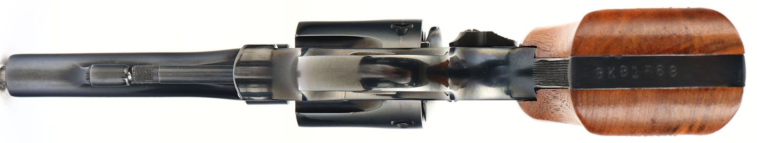 BOXED, Smith & Wesson, Model 18-3, CAL: 22LR, MFG: 1975, SN: 8K81568, Double Action Revolver, 4'' barrel. The S&W logo medallion checkered wood grips are excellent, near mint. The original metal blue finish rates 99%+ overall. The case-hardened hammer & trigger retain vivid case-colors. Bore is excellent. Adjustable rear sight & ramp elevated serrated blade front sight. Comes in original box, with related paperwork, cleaning rod/tips & wax paper.* FFL or C&R Req. - Value: 900 to 1300