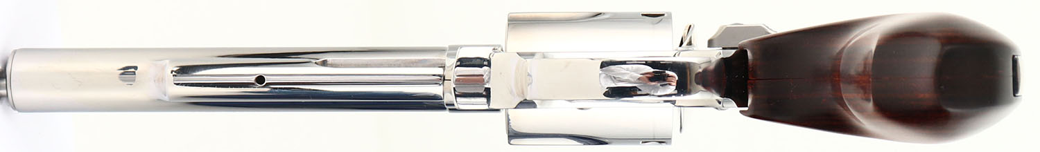 CASED, Smith & Wesson, Model 60-18, CAL; 357 MAG, MFG: Modern, SN: DBX7053, Double Action Revolver, 5'' barrel. The original wood grips are excellent. The original nickel finish is excellent, with a mirror-like finish. Bore is excellent. Adjustable rear sight & elevated serrated blade front sight with orange insert. Comes in factory box, with related paperwork. FFL Req. - Value: 500 to 700