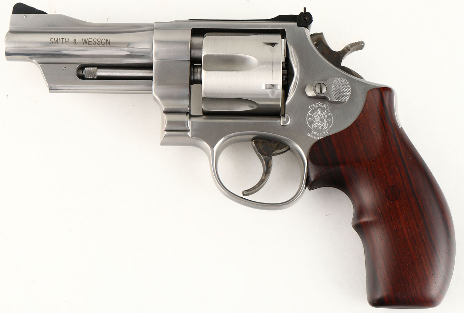 2) BOXED, Smith & Wesson, Model 625-4 - Arms for the Nation: 200th Anniversary of Springfield Armory. CAL: 45 ACP, MFG: 1994, SN: SAC0075, Double Action Revolver, 4'' barrel. The ergonomic smooth wood grips are excellent. The stainless steel finish is excellent. The right side of the frame has a gold S.A cross cannons & flaming cannonball emblem that reads ''SPRINGFIELD ARMORY 1794-1994''. The right side of the barrel is marked '' ARMS FOR THE NATION'' over, ''CAL.45 ACP''. The right side of the frame has the S&W trademark logo. The case-hardened trigger & hammer retain slightly faded, but visible case-colors. Bore is excellent. Adjustable rear sight & ramp elevated serrated blade front sight. Comes in SN matching box, with a good amount of moon clips & extractor tool. This is two of two consecutive lots. Please reference the previous lot for the first gun of a sequential serial number set. FFL Req. - Value: 1400 to 2400