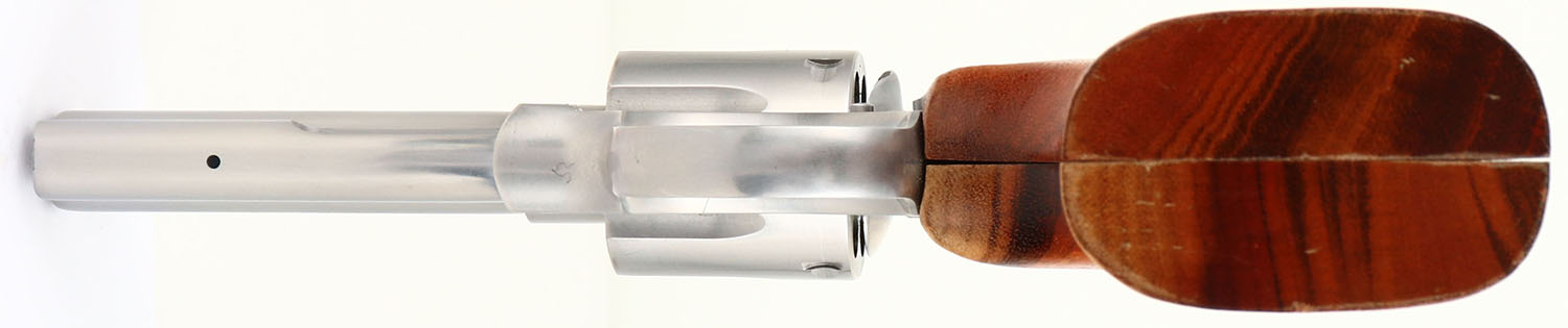 Smith & Wesson, Model 686, CAL: 357 MAG, MFG: Modern, SN: AEJ0811, Double Action Revolver, 4 1/8'' barrel. The S&W logo medallion checkered wood grips are excellent. There are minor handling marks & areas of finish thinning dull. The stainless steel finish is excellent overall, with minor handling marks. Bore is excellent. Adjustable rear sight & elevated blade front sight with orange insert. FFL Req. - Value: 500 to 700