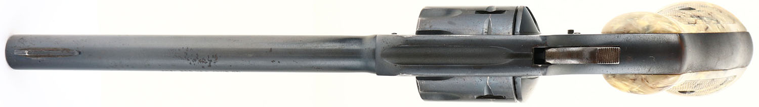Harrington & Richardson, Model 922, CAL: 22, MFG: 1950's 60's, SN: N59528, Double Action Revolver, 6'' barrel. The H&R checkered multi-color plastic grips are excellent. The original metal blue finish rates 90% on the barrel & 85% on the frame, with intermittent spotting/speckling toned to a brown patina. Bore is excellent, with some visible wear. Square notch rear sight & blade front sight. Cylinder does not rotate when trigger is pulled or hammer is cocked. Internal parts issue. Needs to be inspected by gunsmith before use. SOLD AS IS NO RETURNS. FFL or C&R Req. - Value: 100 to 200