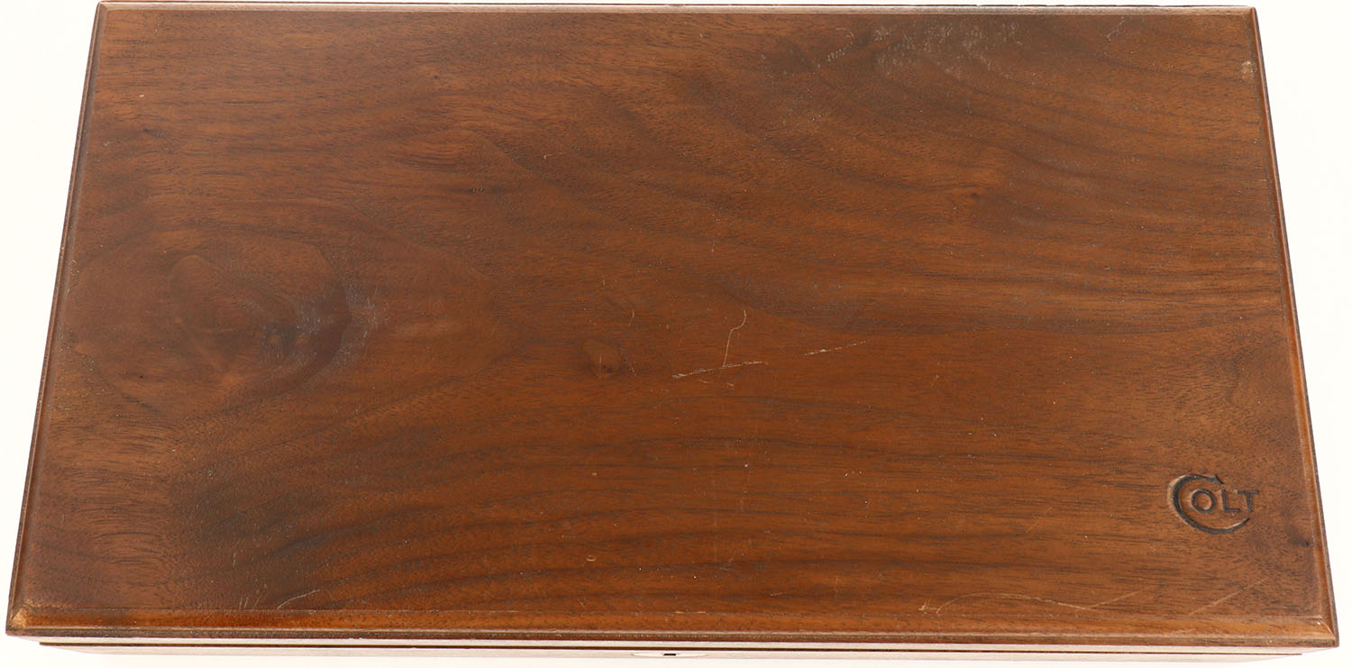 CASED, Colt Black Powder Arms Co., 1861 Navy, 3rd Gen - General Custer Special Edition, CAL: 36, MFG: Modern, SN: 45752, Percussion Single Shot Revolver, 7 1/2'' barrel. This revolver has been fully & expertly restored. The top of the barrel is marked ''ADDRESS SAM L COLT NEW-YORK U.S AMERICA''. The checkered & carved wood grips are excellent, having been lightly sanded & refinished. The restored blued finish is excellent. In preparation for the reblue process, some of the engravings are thin from polishing. All matching SN on the frame, barrel, trigger guard & butt. Bore is very good, with frost/haze. V-notch rear sight on hammer & small blade front sight. Comes in a Colt marked wood case, with powder flask, cap tin, tool, bullet mould & key. Black Powder, No FFL Req.