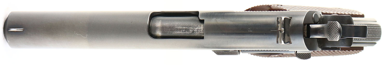 Colt, Model: M1911A1, ''UNITED STATES PROPERTY''. Cal: .45 ACP, MFG: 1942, S/N: 785071, Semi-auto pistol, 5'' barrel. A WWII military pistol. The inspector stamp of W.B. is for Colonel Waldemar S. Broberg. He was the Army Inspector of Ordnance from July 1st, 1941 to June 16th, 1942 in the Hartford/Springfield Ordnance District. This pistol is part of the last batch he approved his last month. The gun is also right during the transition era of when the finish went from ''Brushed Blue'' to being parkerized. The ''Coltwood'' plastic grips are excellent & sharp. The rearsenaled metal blue finish rates 99% overall. The darker tone on the front 1/3 of the slide is from that part being hardened to help increase its strength, leading to the metal holding onto the bluing better than the un-hardened section. The left side of the slide is marked with Colt's patent dates, the Rampant Colt logo, & ''COLT'S PT.F.A.MFG.CO.'', ''HARTFORD.CT.U.S.A.''. The right side of the frame is marked ''UNITED STATES PROPERTY'', ''M1911A1 U.S. ARMY'', the S/N, & a ''74'' on the trigger guard. The left side of the frame is marked with the ''WB'' inspector stamp by the slide catch. There is a ''P'' mark by the mag release button, which is just a basic proof mark. The left side of the trigger guard is marked with a ''8'', & a ''VP'' in a triangle stamp, which is the Colt verified proof factory inspection stamp. The bore is excellent, bright & mirror like. The slide holds the small half moon blade front sight, with a U-notch rear sight. Pistol comes with a single blued mag. An overall excellent example of a WWII U.S. Property Colt & one of the last blued M1911's for the military. FFL or C&R Req. - Value: 1500 to 2500
