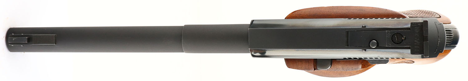 BOXED, Colt, Woodsman 3rd Series Match Target, CAL: 22LR, MFG: 1966-69, SN: 215684-S, Semi Auto Pistol, 6'' heavy barrel. The checkered target grips are excellent. There are minor handling marks to the finish. The original metal blue finish rates 99% on the barrel & the frame rates 95%, with concentrated wear to the front/back straps. Bore is excellent. Adjustable rear sight & pinned blade front sight. Comes in original box, with paperwork. Box has edge & corner wear, with multiple tape repairs to the corners. FFL or C&R Req. - Value: 900 to 1400
