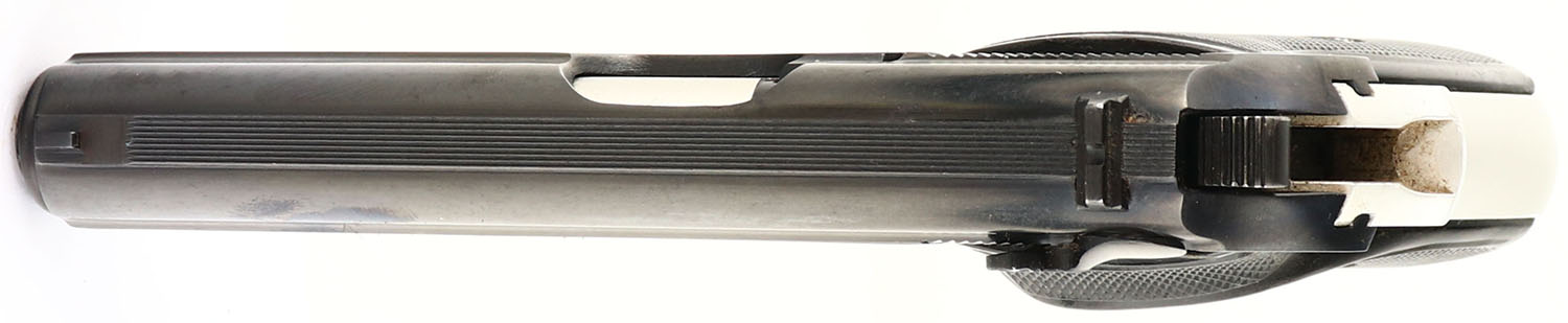 FEG (Hungary), Model PA63, CAL: 9x18 MAKAROV, MFG: 1963-90, SN: L001423, Semi Auto Pistol, 3 3/4'' barrel. The checkered target style grips are very good, with handling wear overall. The blued finish on the slide rates 90%, with scuffs & some areas of hazy discoloration. The aluminum slide is excellent, with similar handing wear to the slide. Bore is excellent. Factory fixed sights. Comes with extra magazine. FFL Req. - Value: 150 to 250
