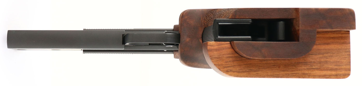 CASED, Hammerli, Model 208S, CAL: 22LR, MFG: 1988-2000, SN: 49609, Semi Auto Pistol, 5 3/4'' barrel. The original oversized ergonomic & textured target grips are excellent. The two-tone matte & blued finish rates 99% overall. Bore is excellent. Factory adjustable rear sight & ramp elevated blade front sight. Comes in factory hard case, with (3) extra mags, tools, weight & cleaning rods. FFL Req. - Value: 1200 to 1800