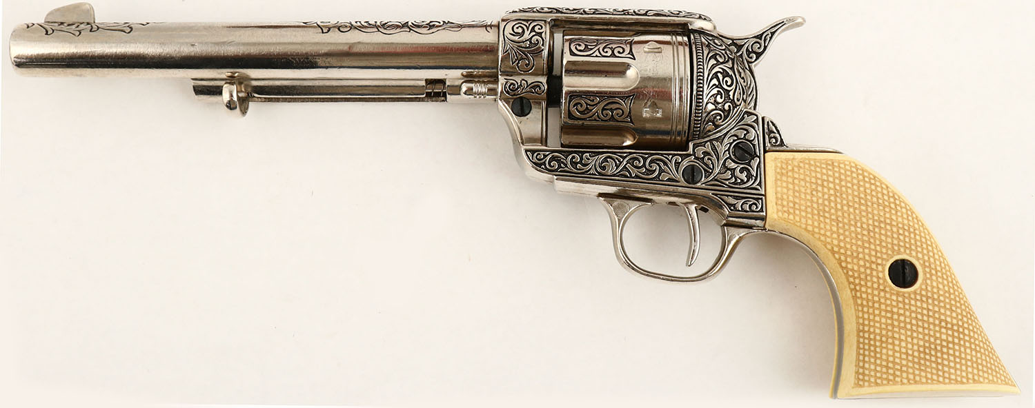 | MOVIE PROP Colt 1873 SAA, has been engraved, has wood display ca...