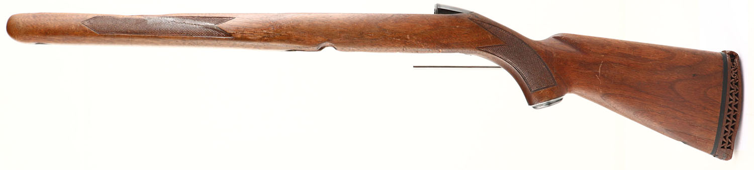 Winchester Model 100 take-off stock, factory checkered, metal pistol grip cap, hardened ventilated pad, missing sling loops, original finish. Grade: Very Good - Value: 10 to 50