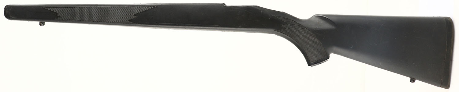 Savage bolt action rifle synthetic stock. Take-off, one piece, checkered, flat pistol grip, sling studs, capped. Grade: Good++ - Value: 10 to 30
