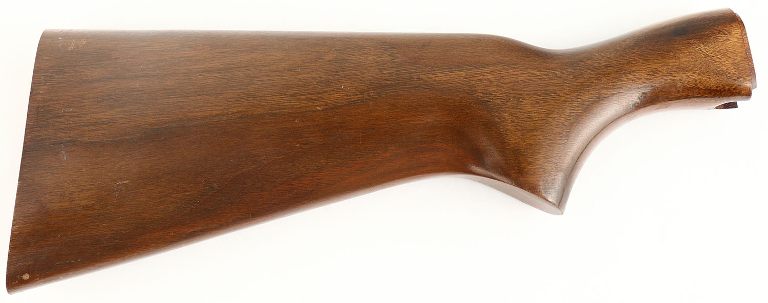 Remington Model 742 take-off stock. Flat pistol grip. Factory finish is very good, but with some heat & wear blemishes. 3/4''x 1/2'' edge chip at buttend. No buttplate. Grade very good. - Value: 10 to 40
