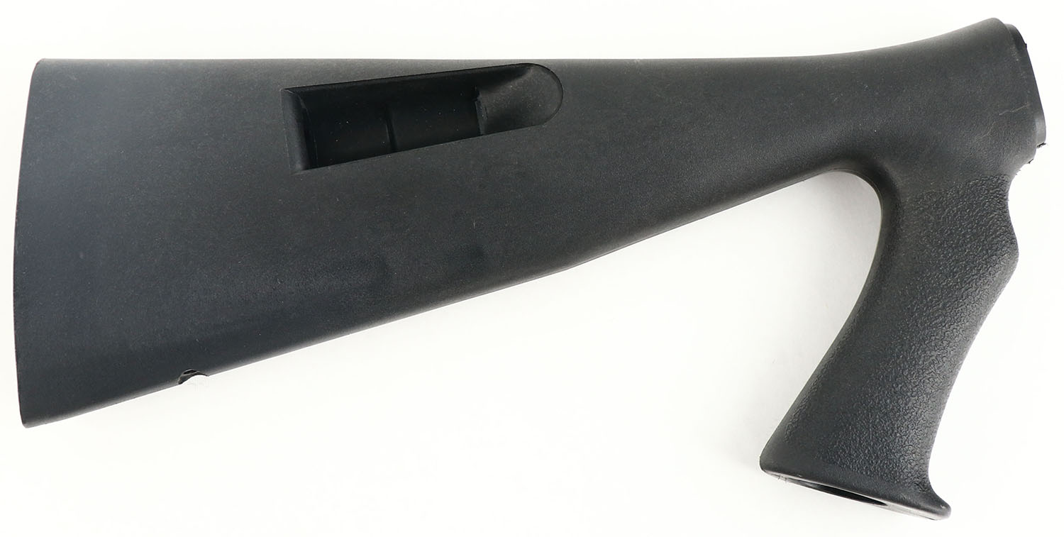 Remington Model 870 shotgun, new aftermarket tactical synthetic stock. Extended pistol grip. Few handling blemishes. Extra shell storage in stock. No buttplate or sling stud. Grade excellent - Value: 10 to 40