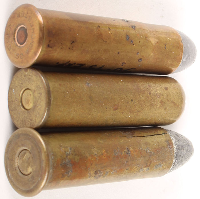 | Lot of 3. (1) 50-70 Govt--1.76'' case, NHS, FN Lead. (1) 50-...
