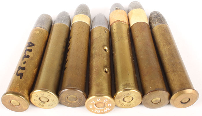 | Lot of 7. 38-40 Remington. (4) HS:''UMC H 38-40 S'', 1-...