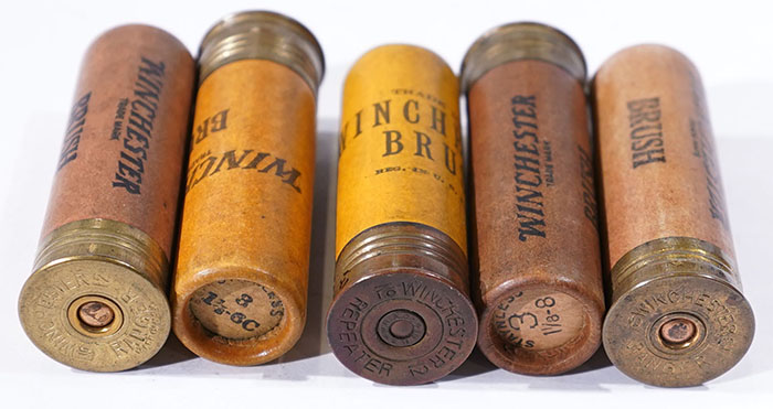 | Lot of (5) 12 Ga BRUSH paper shotgun shells. Grade: Excellent ...