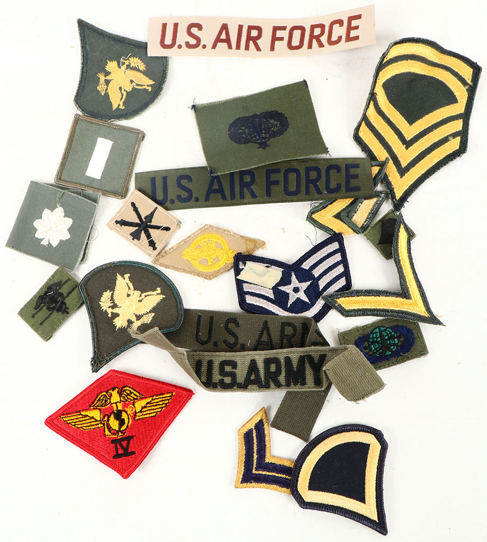 Large lot of US Military patch's, emblems, & rank insignia. Grade: Excellent - Value: 2 to 20