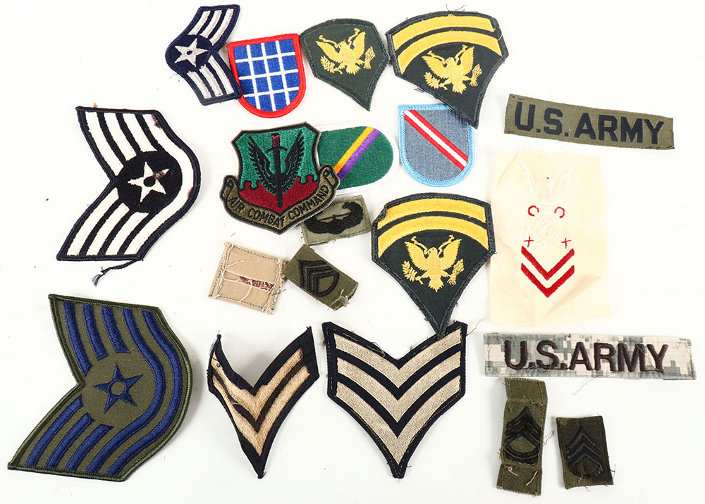 Large lot of US Military patch's, emblems, & rank insignia. Grade: Excellent - Value: 8 to 20
