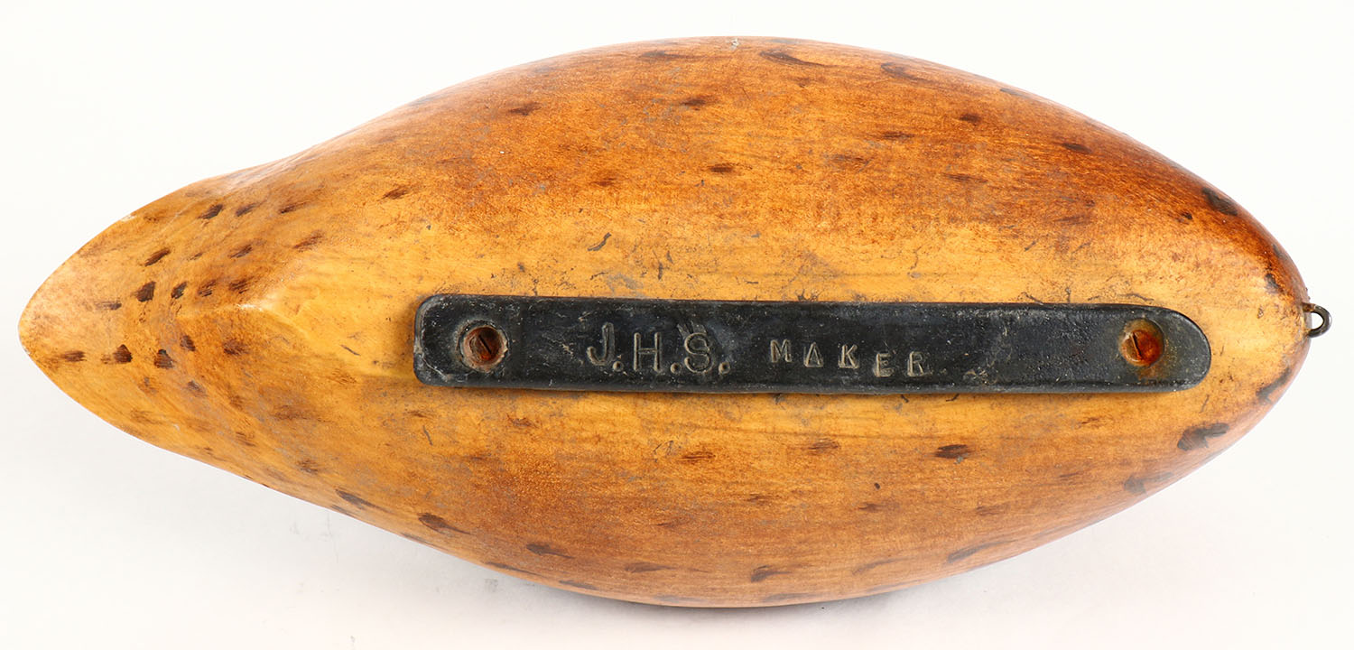 Preening Gadwall Hen by Jim Slack, Pekin, IL, glass eyes, hollow wood, excellent original paint, the Drake pair is in the previous lot, 12'' OAL. Grade: Excellent ++ - Value: 100 to 200