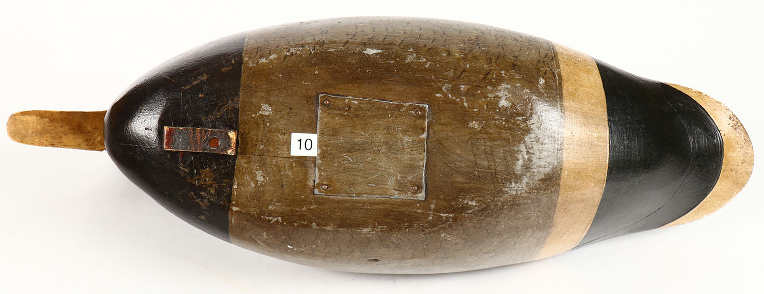 Mallard Drake by Chip Alsorp Pt. Pleasant MD, PE, hollow wood, wondaful original detailed comb paint, structurally excellent, leather line tie, 18 1/2'' OAL. Grade: Excellent + - Value: 200 to 500