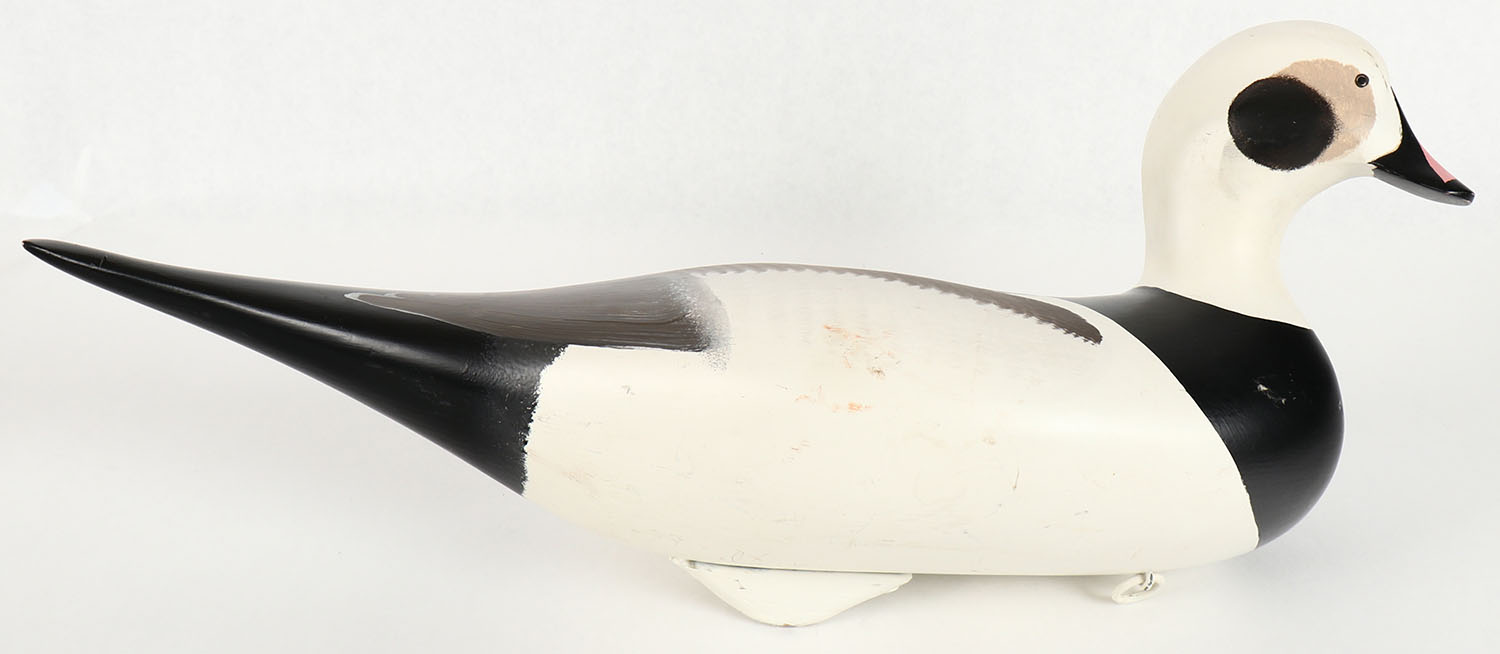 Old Squaw Drake by John H. Clark, Havre De Grace, MD, painted eyes, solid wood, original paint, structurally excellent, signed on bottom, 18 1/2'' OAL. Grade: Excellent + - Value: 40 to 80