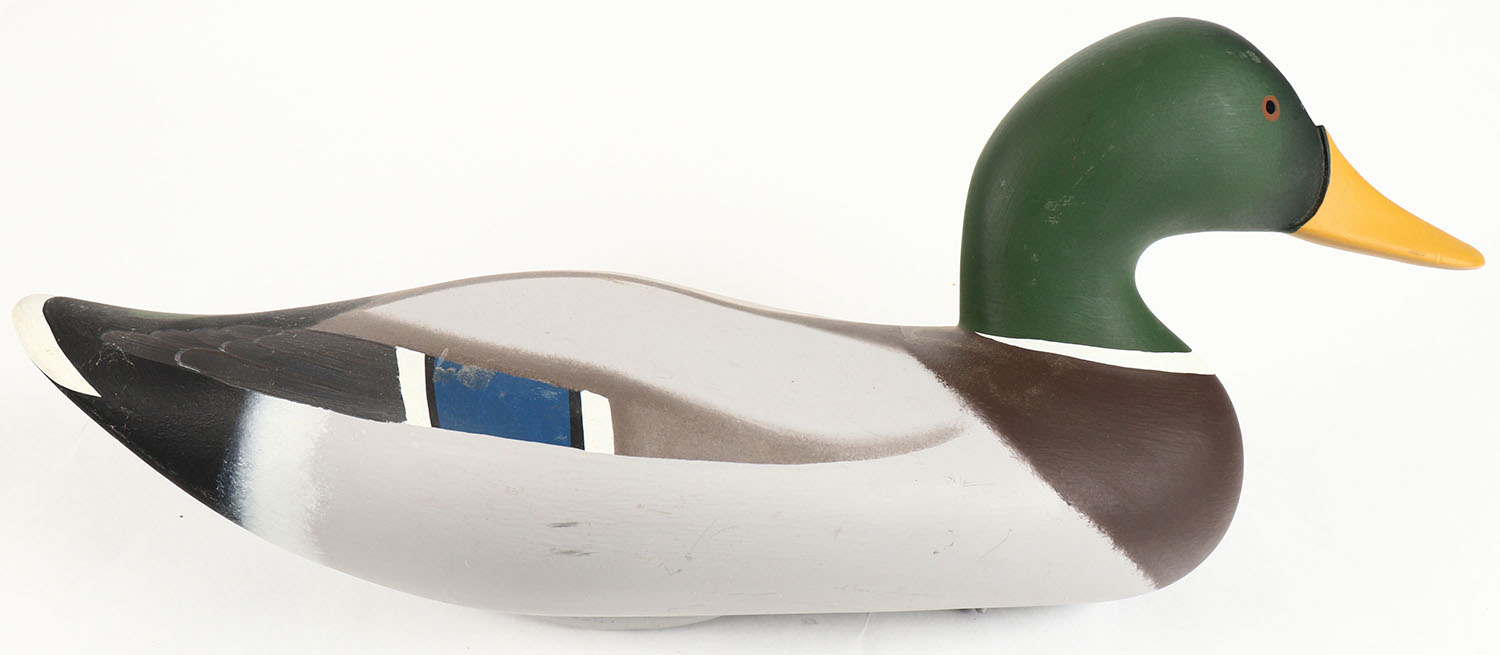 Mallard Drake by Bryan Bodt, Havre De Grace, MD, painted eyes, solid wood, original paint, structurally excellent, branded BODT on bottom, 16'' OAL. Grade: Excellent ++ - Value: 30 to 60