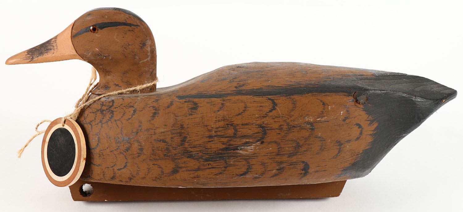 Mallard Hen by DA Decoy Shop, GE, solid wood, original paint, structurally excellent, 16 1/2'' OAL. Grade: Excellent - Value: 20 to 40