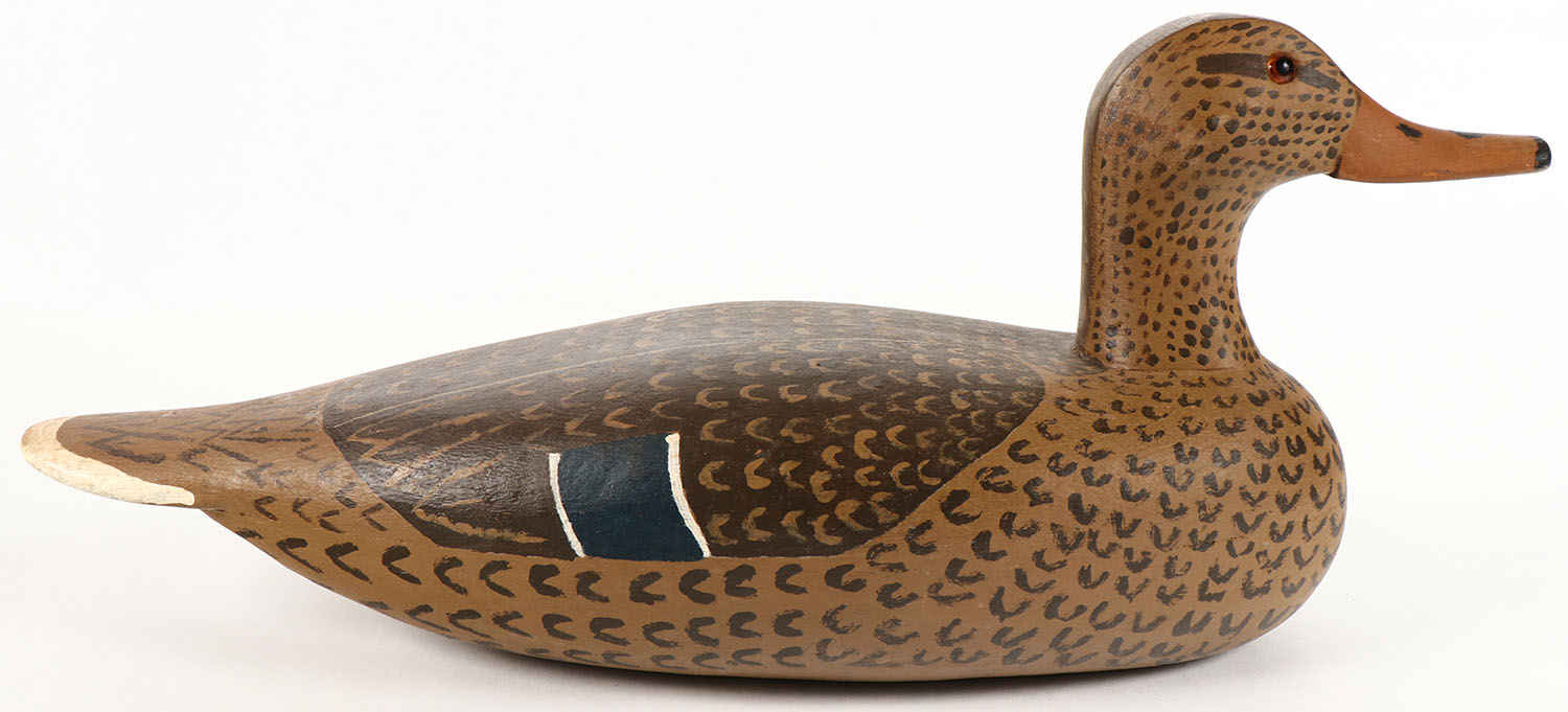 Mallard Hen by unknown maker, GE, hollow wood, original paint, structurally excellent, 16 1/2'' OAL. Grade: Excellent - Value: 30 to 60