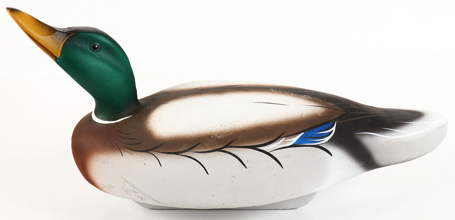 Mallard Drake by Michael & Susan Veasey, MD, glass eyes, solid wood, original paint, 17'' width, structurally excellent. Grade: Excellent ++ - Value: 20 to 60