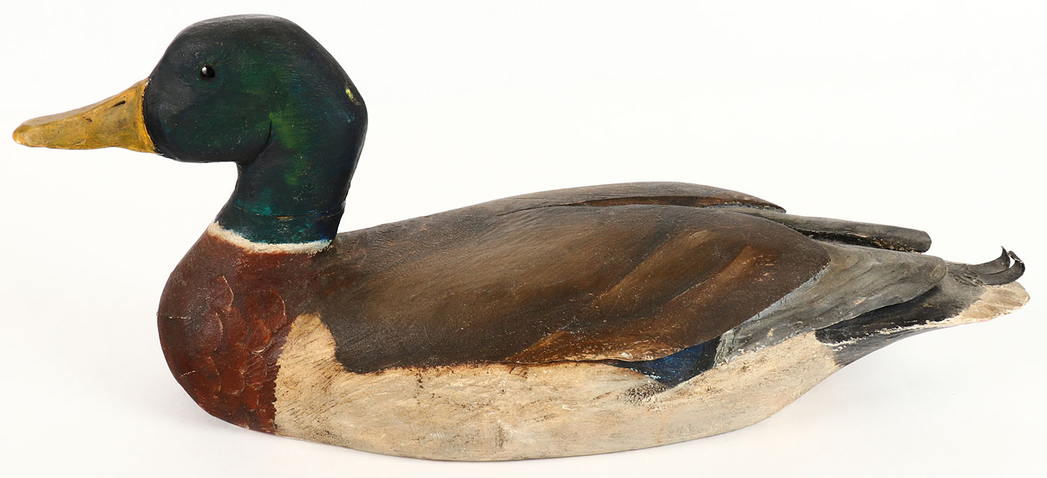 Mallard Drake by Brad Brockmann, GE, solid wood, orignal paint, structurally excellent, signed on bottom, 16'' OAL,. Grade: Excellent - Value: 20 to 40