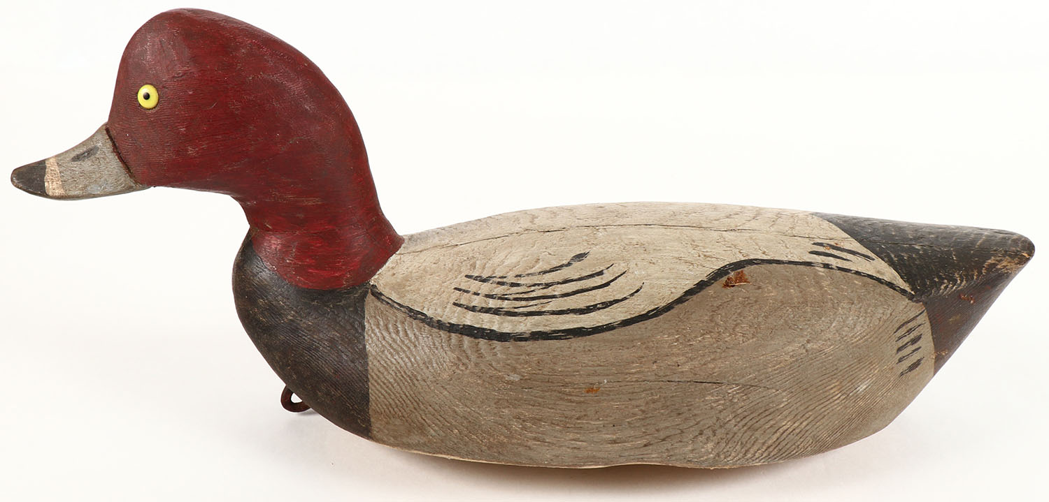 Redhead Drake by unknown maker, GE, solid wood, original paint, structurally excellent, 13 1/2'' OAL. Grade: Excellent - Value: 20 to 40
